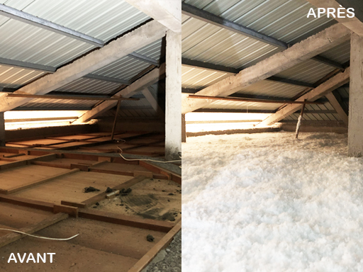 • Avant/Après : Isolation en soufflage de laine de verre écologique à SAINT JOSEPH