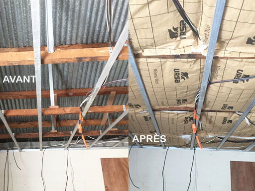 Pose d’isolation en rouleaux de laine de verre écologique au TAMPON
