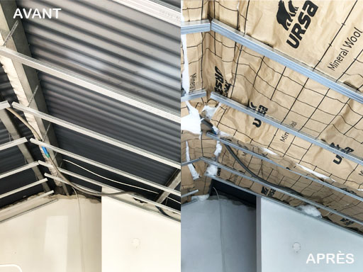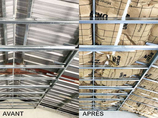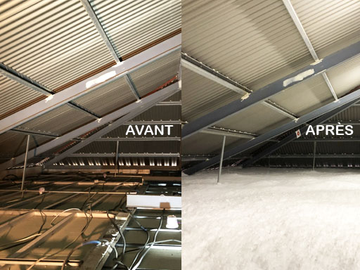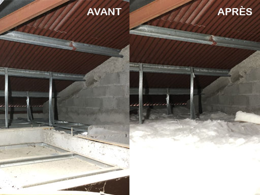 Petit AVANT / APRÈS d’une pose d’isolation en soufflage au Tampon. Ce client a bénéficié de l’offre à 0€ pour la fourniture et la pose de laine de verre nouvelle génération 100% écologique 100mm, possible grâce à son éligibilité à une prime Économies d’Énergie du dispositif AGIR PLUS d’EDF. Le montant de l’aide : -13€/m² …