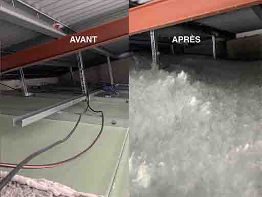 Isolation d’un plafond plat en soufflage de laine de verre écologique de 100mm d’épaisseur pour l’isolation du plafond. Ce client a bénéficié de la prime partenaire AGIR PLUS d’EDF, le coût des travaux : 6,34€/m² TTC fourniture et pose comprise. Contactez nous pour un devis gratuit, déplacement sur toute l’île de la Réunion.