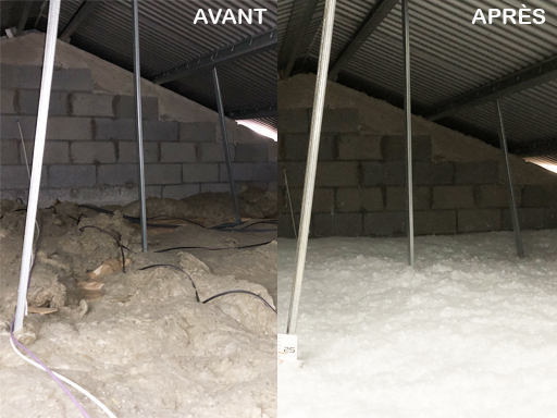 Avant/Après d’une pose d’isolation de laine de verre 100% écologique de 100 mm d’épaisseur par soufflage, réalisée chez un client de Saint Joseph. Éligible à une prime Économies d’Énergie prévue dans le cadre du partenariat de TROPIK ISOLATION et du dispositif AGIR PLUS d’EDF, ce client a profité de notre offre à 0€ sur la …