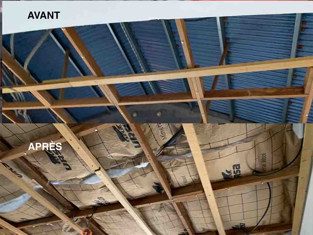 Isolation d’un plafond plat en rouleaux de laine de verre écologique de 100mm d’épaisseur pour l’isolation du plafond. Ce client a bénéficié de la prime partenaire AGIR PLUS d’EDF, le coût des travaux : 6,34€/m² TTC fourniture et pose comprise. Contactez nous pour un devis gratuit, déplacement sur toute l’île de la Réunion.